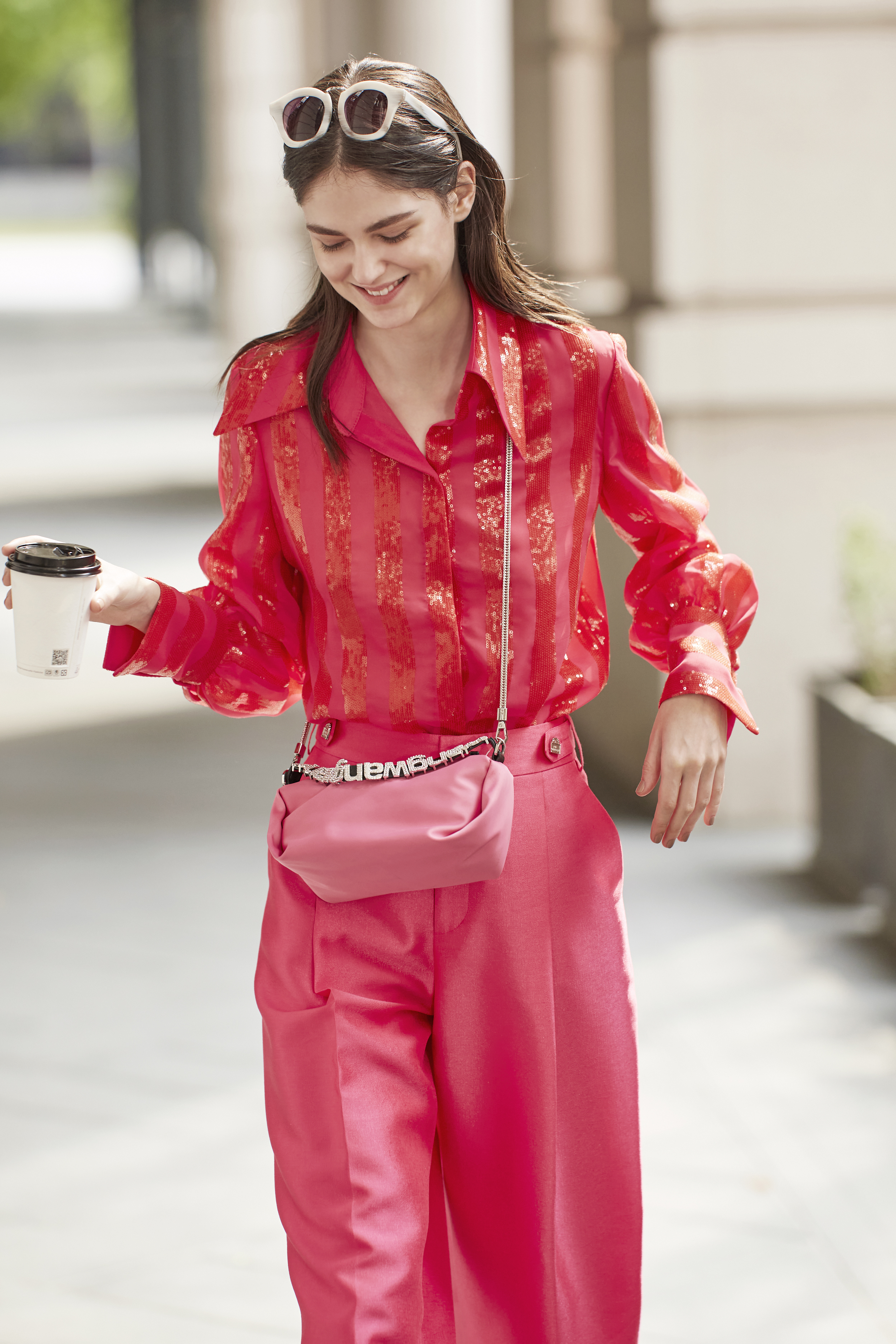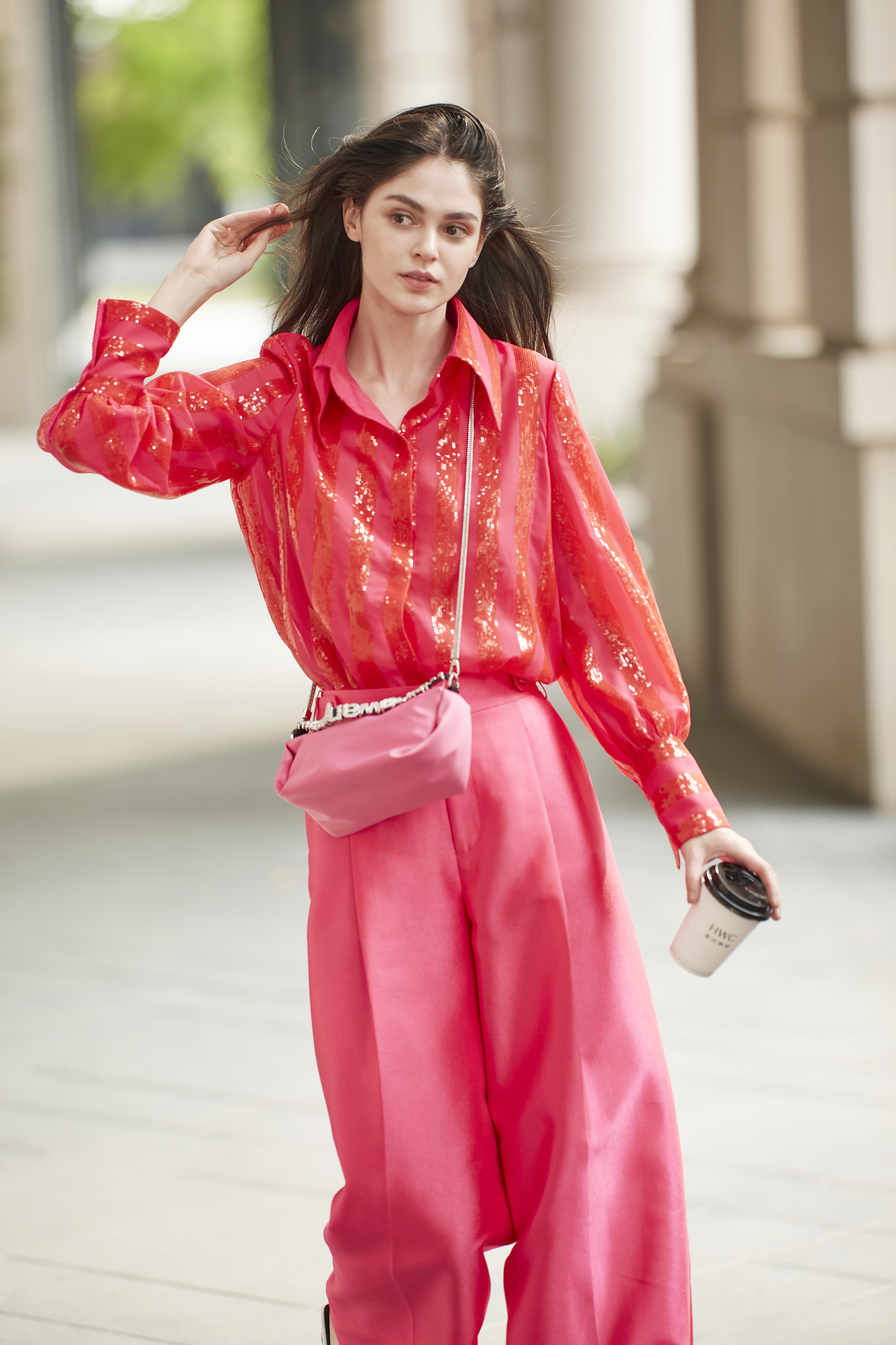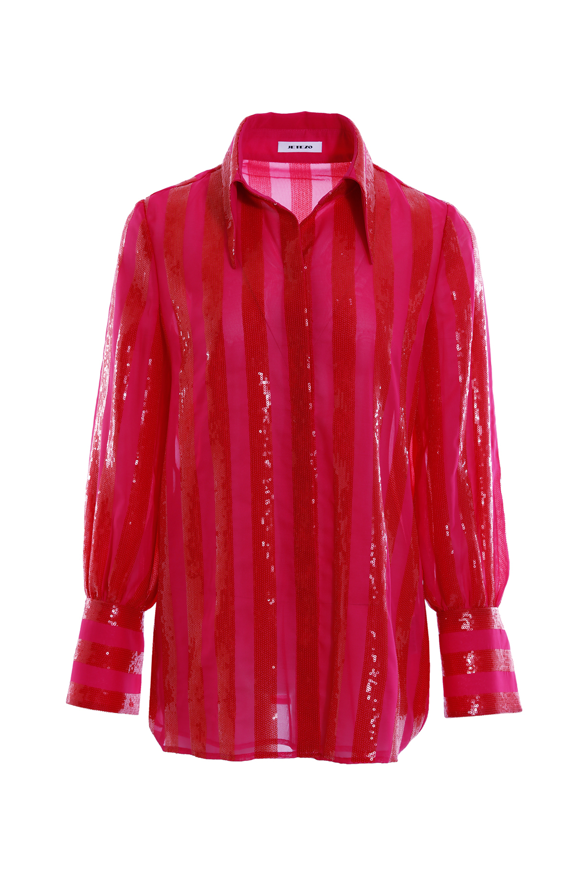 BC15006A1 玫瑰山谷亮片刺繡條薄紗襯衫