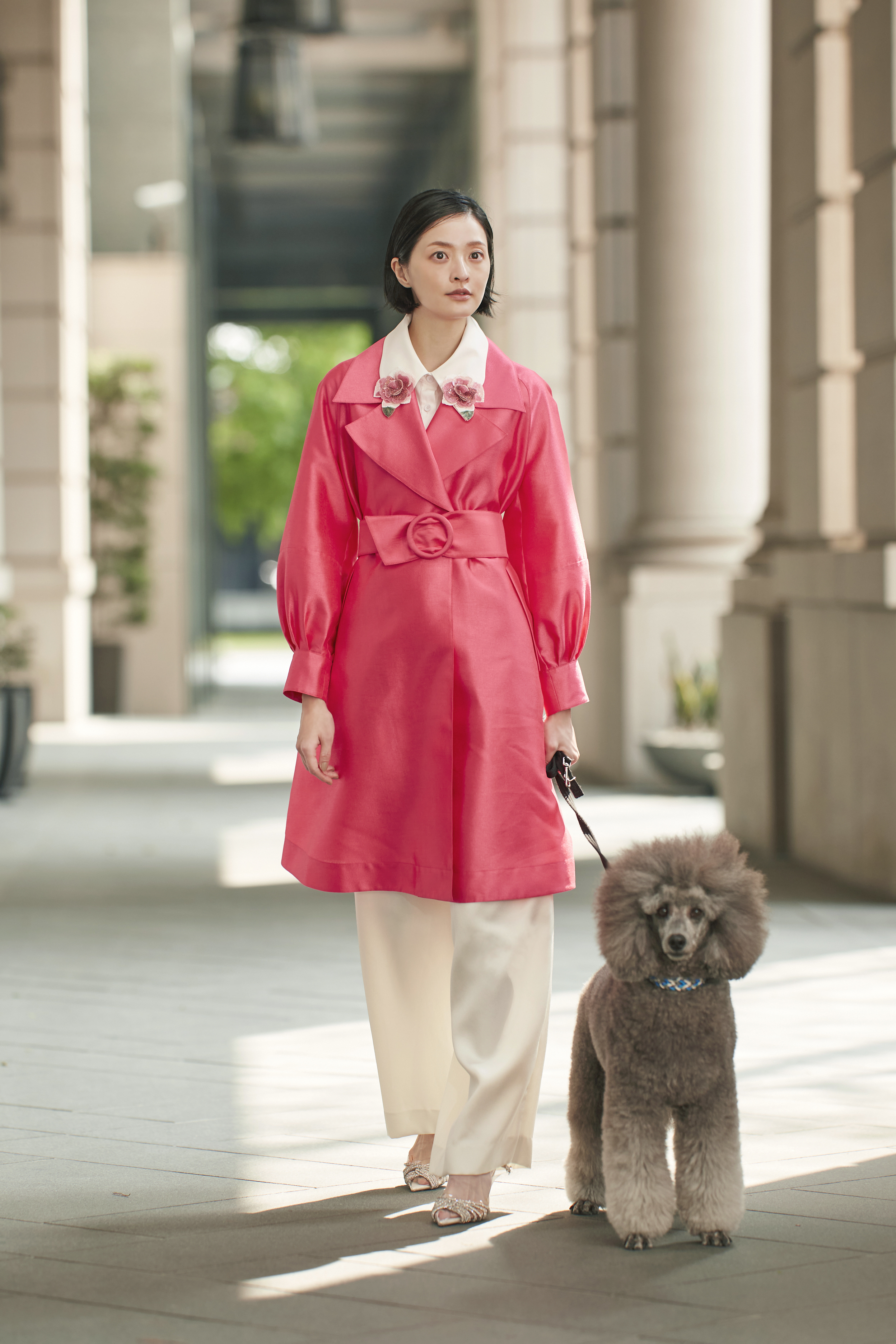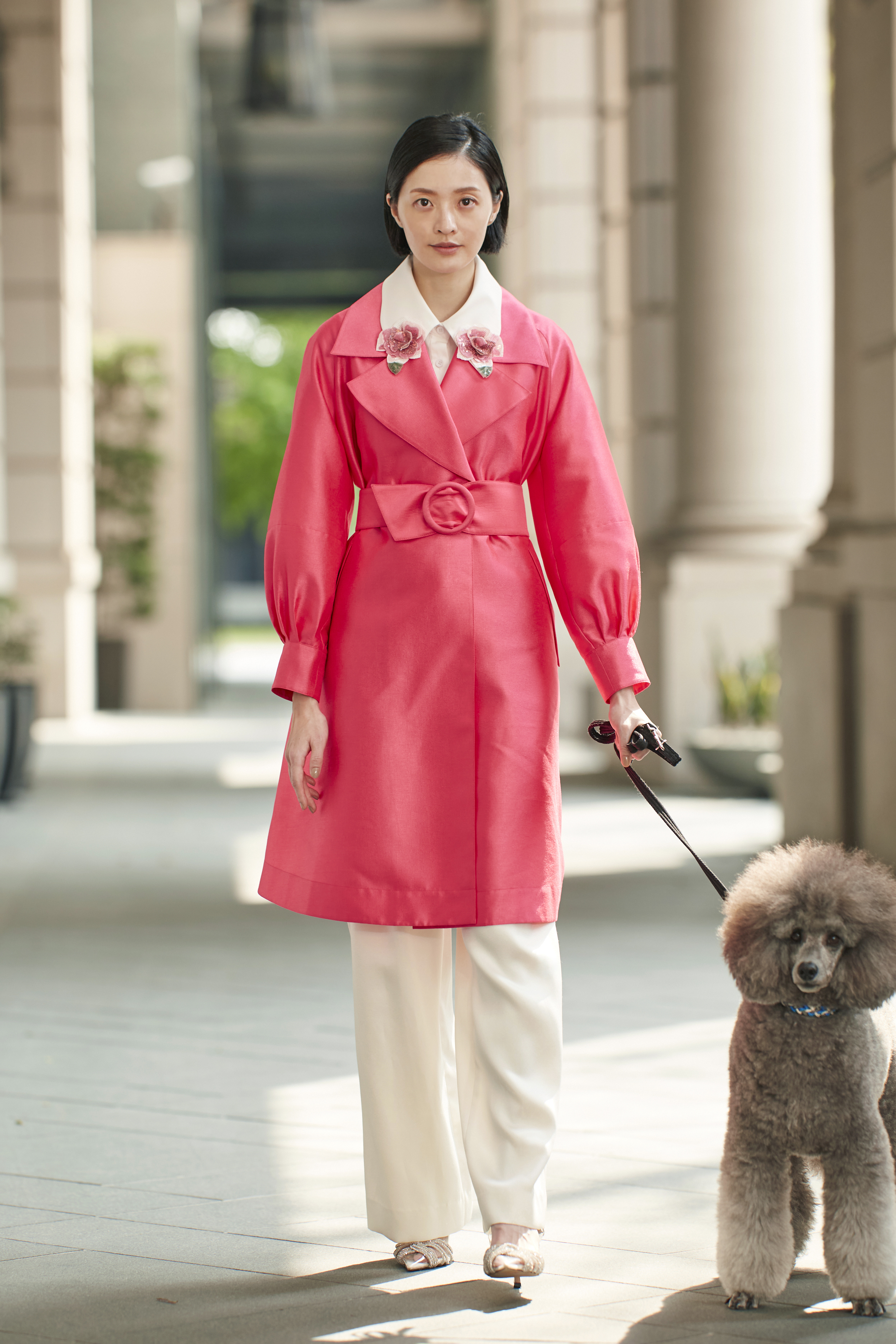 BC15006D1玫瑰山谷塔夫塔綁帶風衣