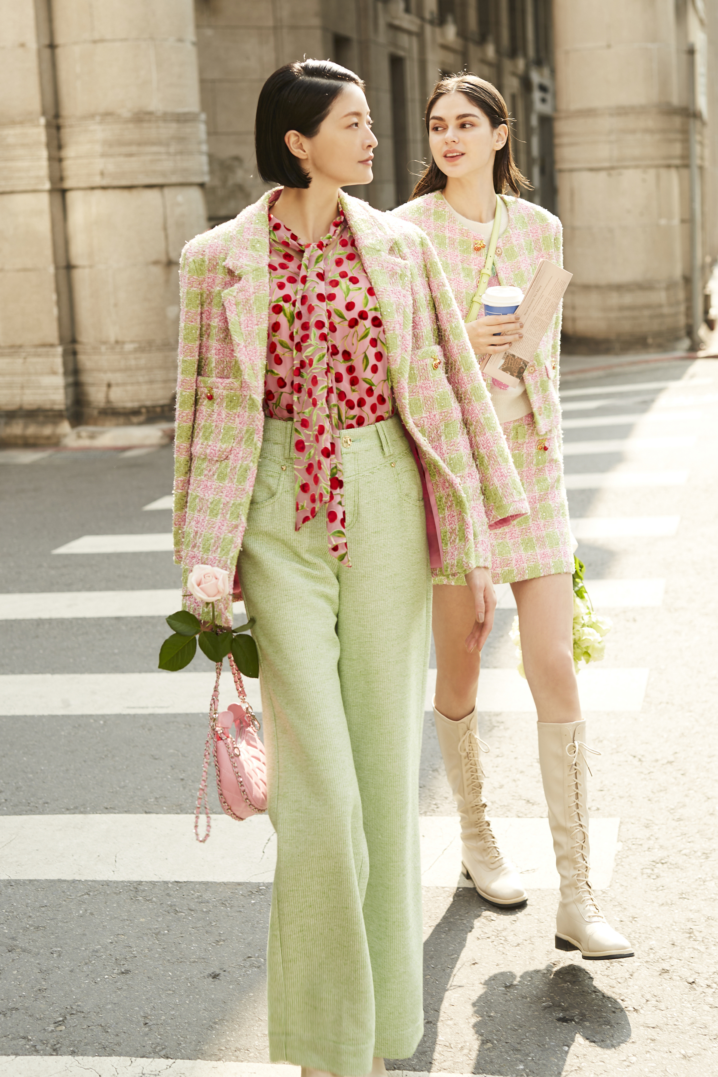 BC15018B1 玫瑰山谷小香花呢海軍寬褲 (2色)