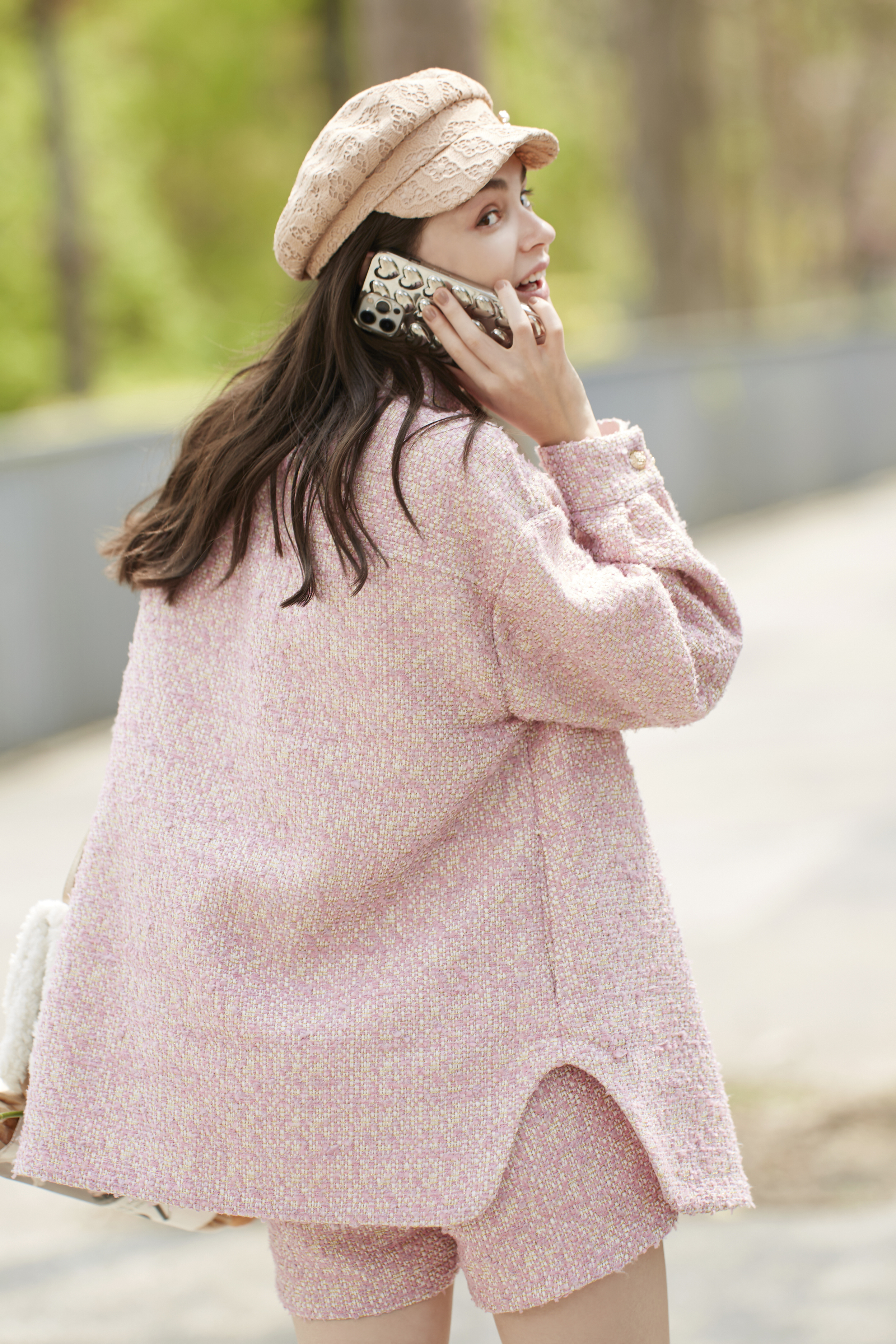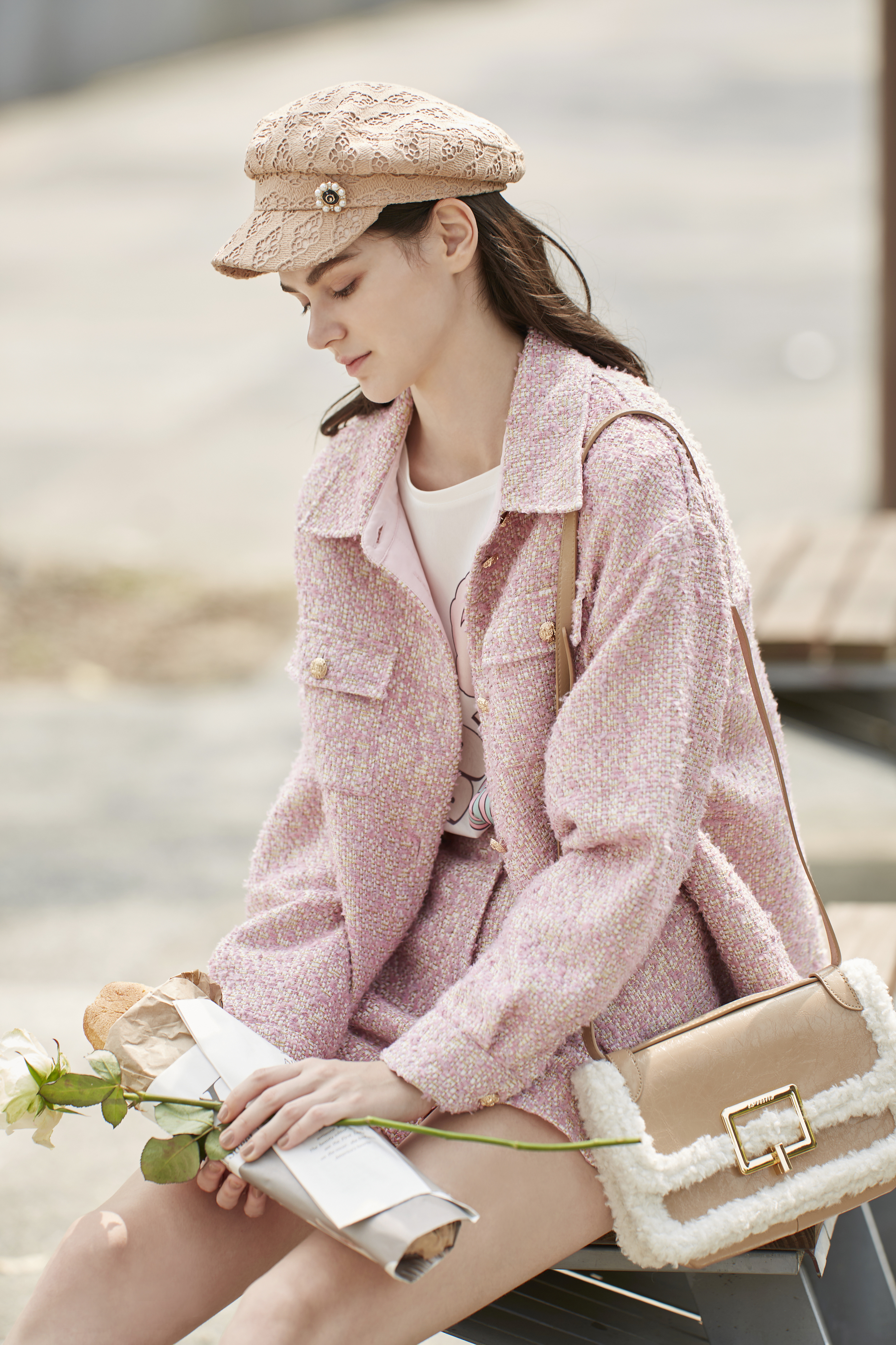 BC15029D1 玫瑰女神灰粉襯衫外套