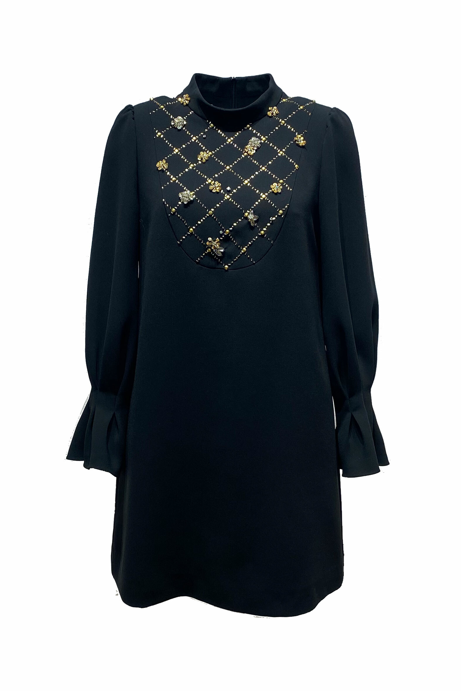 布料為高密度霧面混紡材質,手感柔滑卻挺度充足,能穩穩撐起珠飾重量,讓整體輪廓乾淨、俐落。