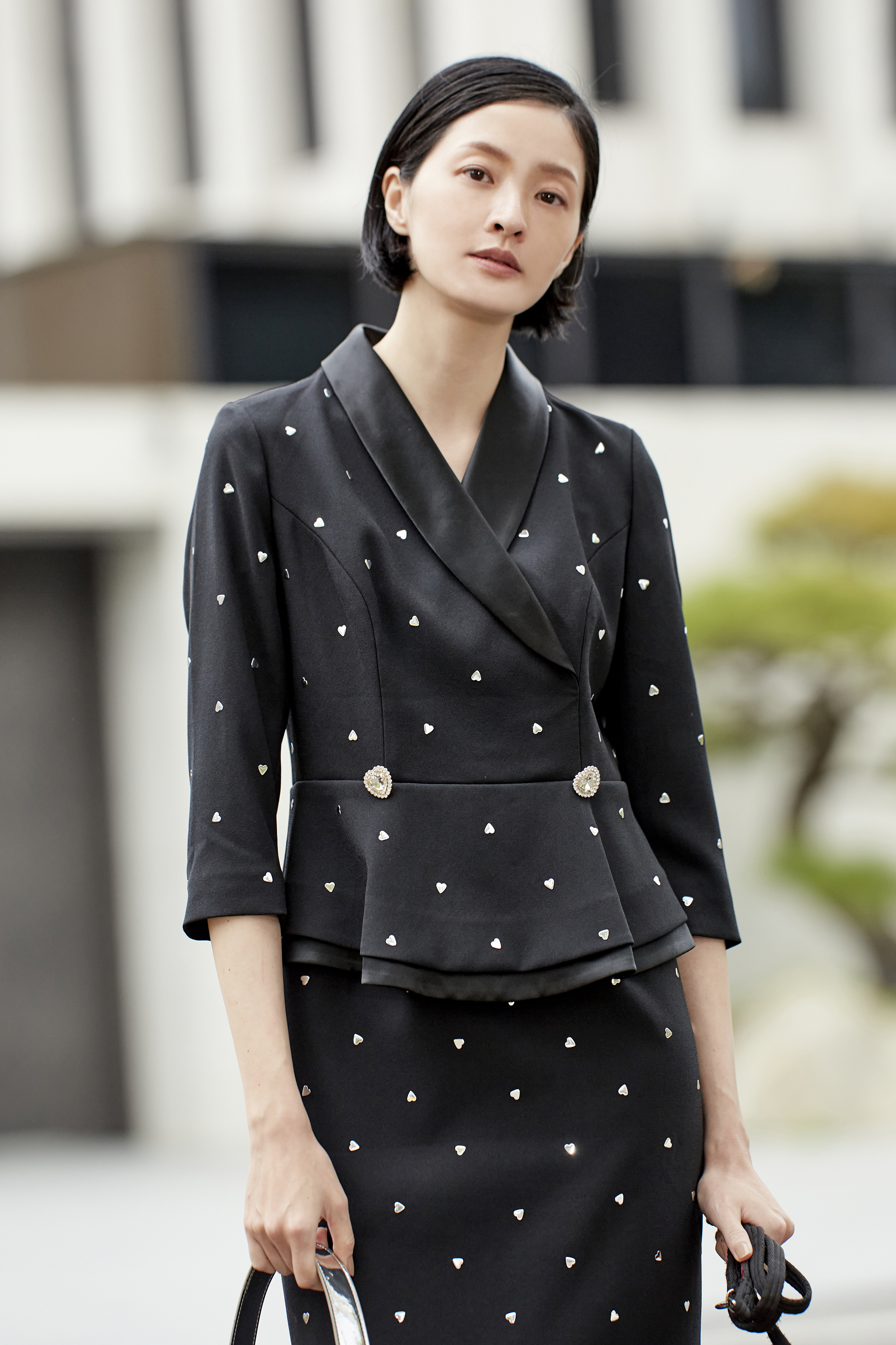 BC15109E1愛心閃鑽假兩件洋裝