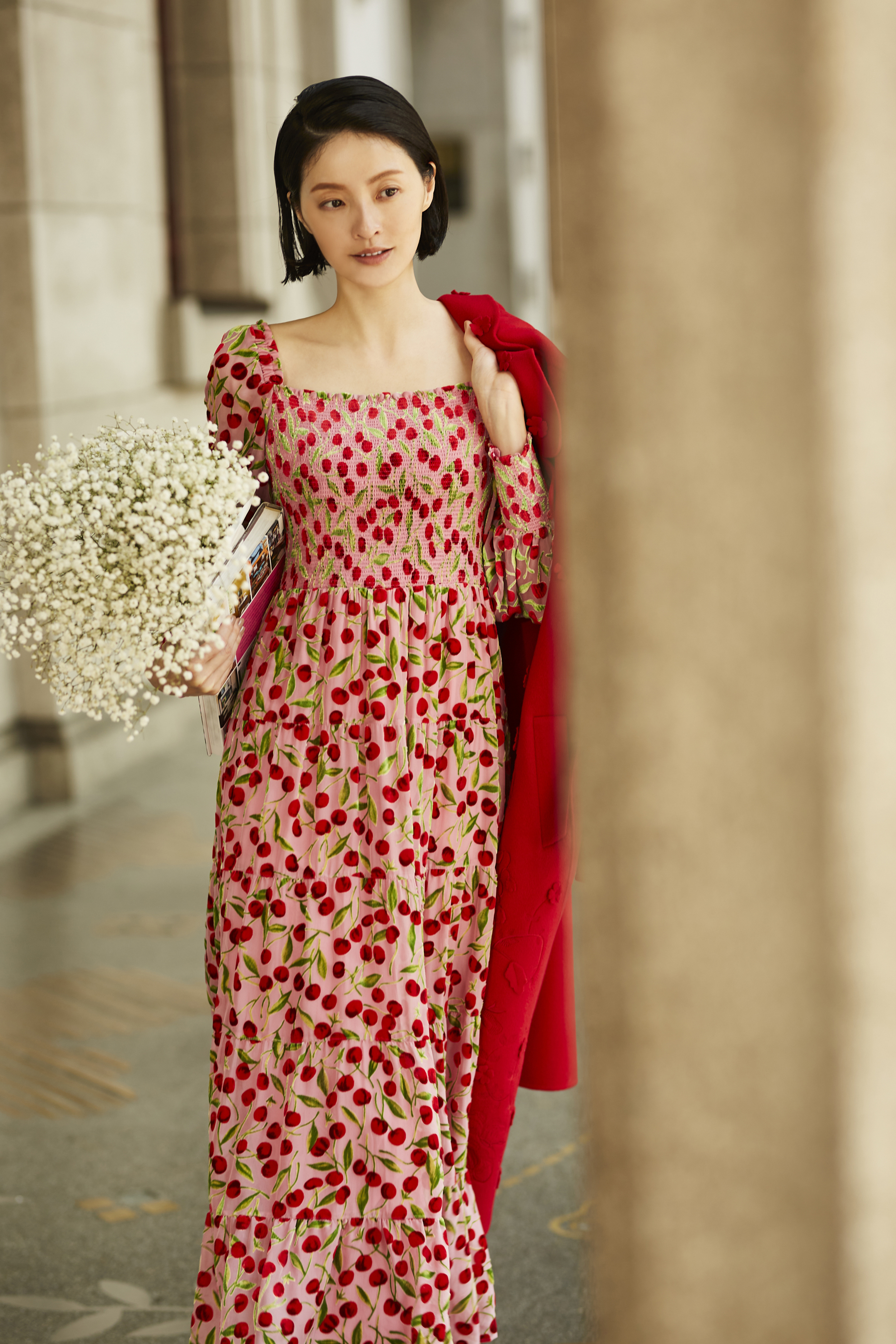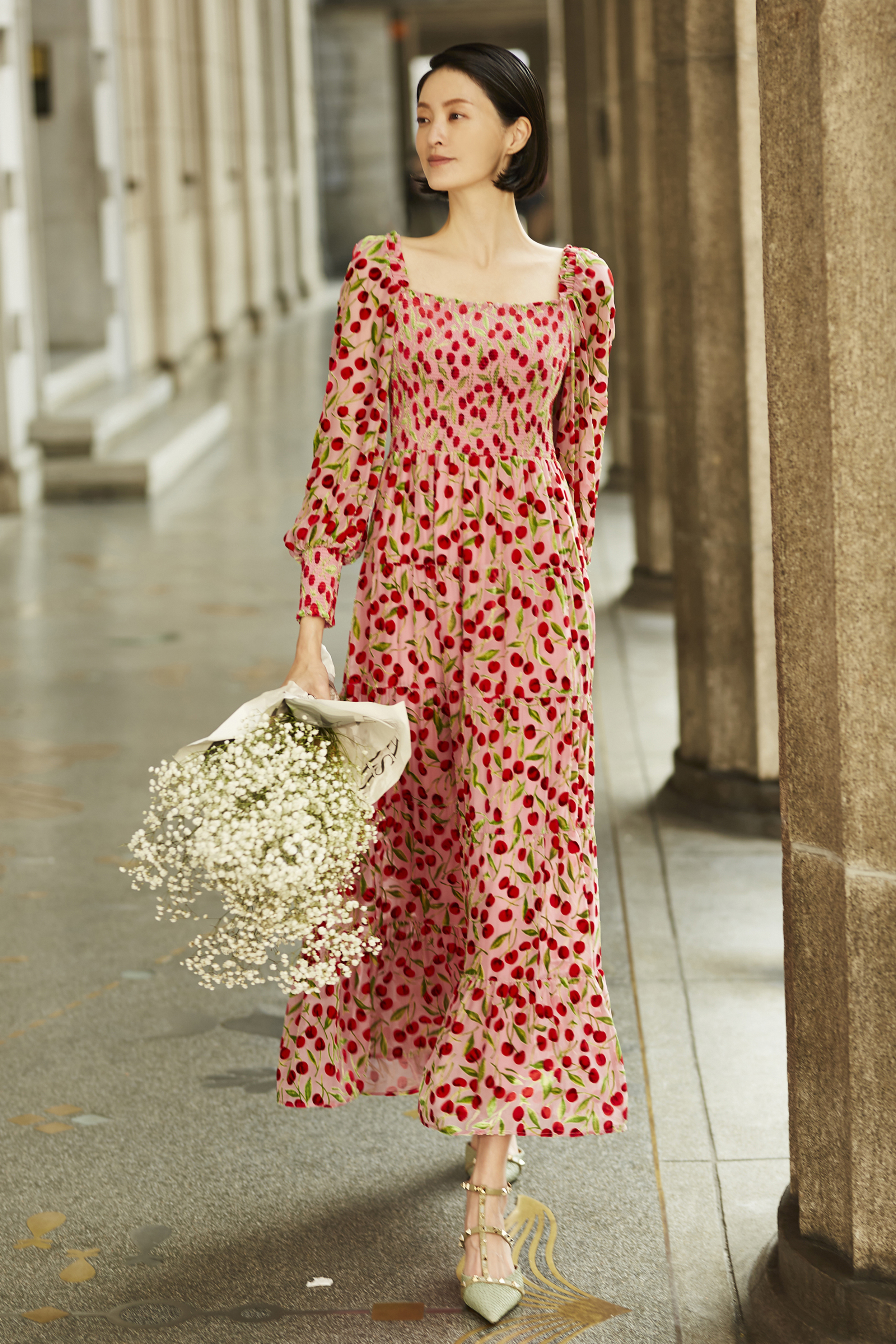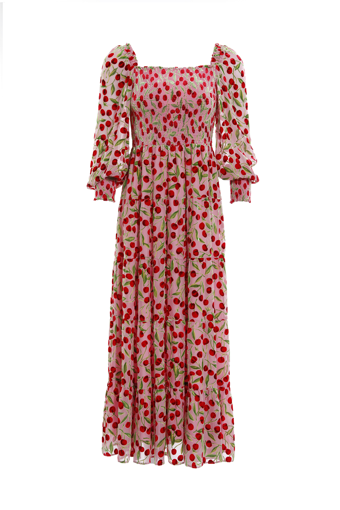 BC15115E1甜美櫻桃平口長洋裝