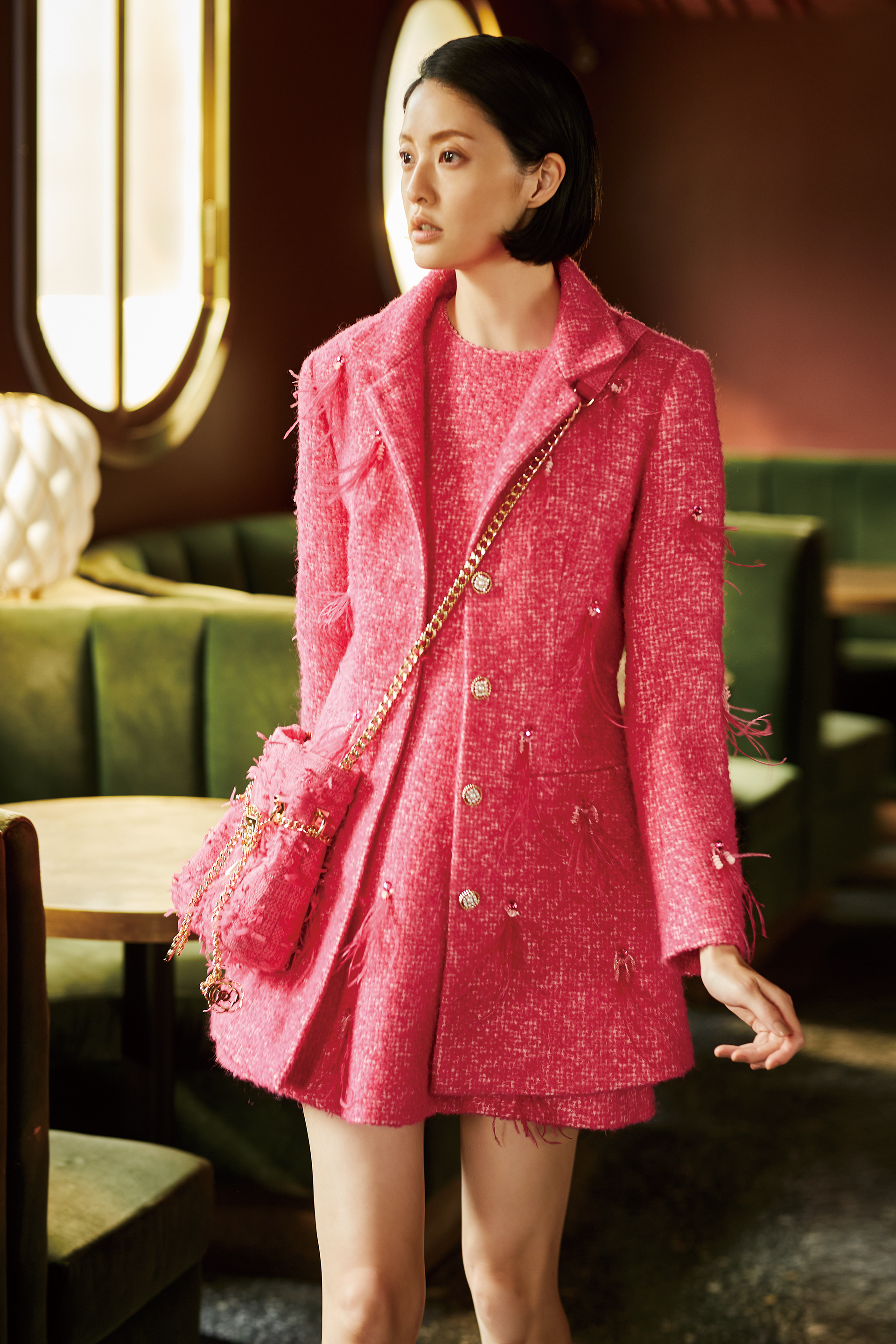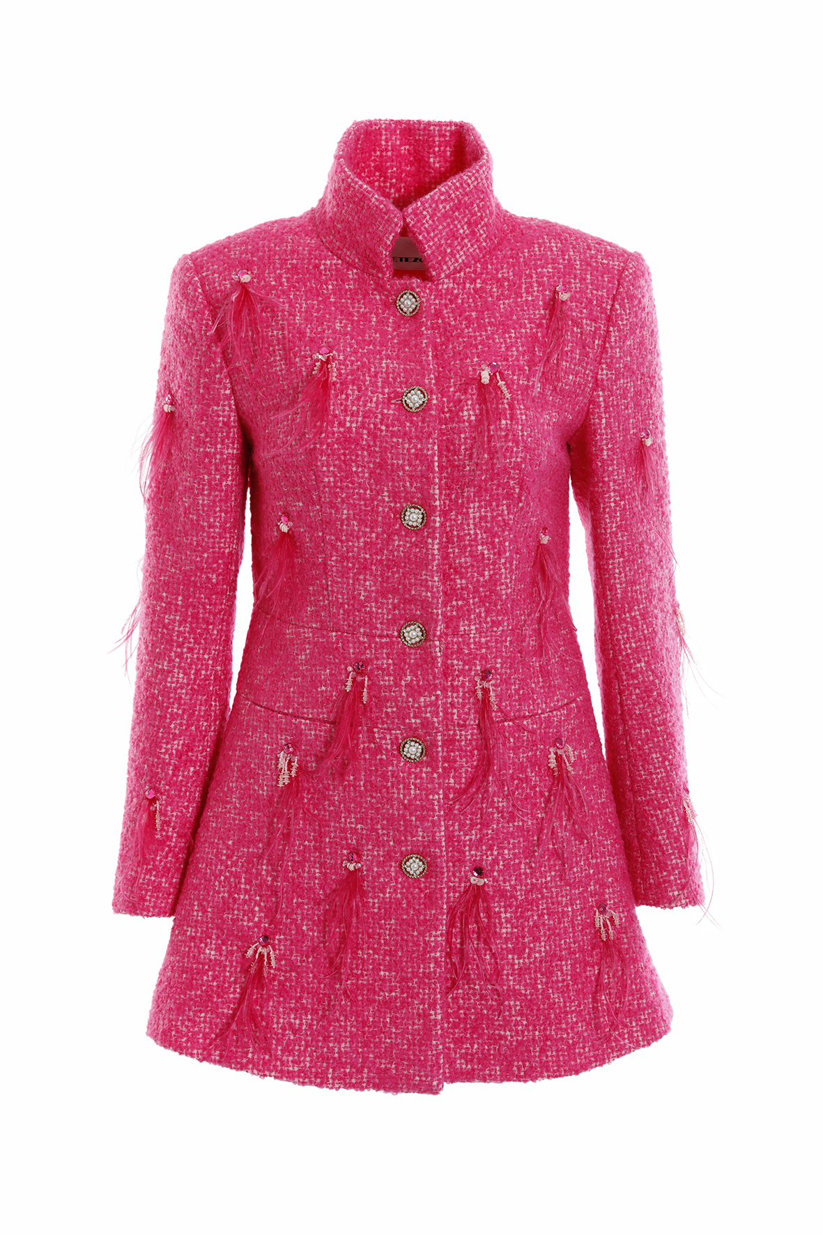 BC15135D1桃紅小香毛呢流蘇外套