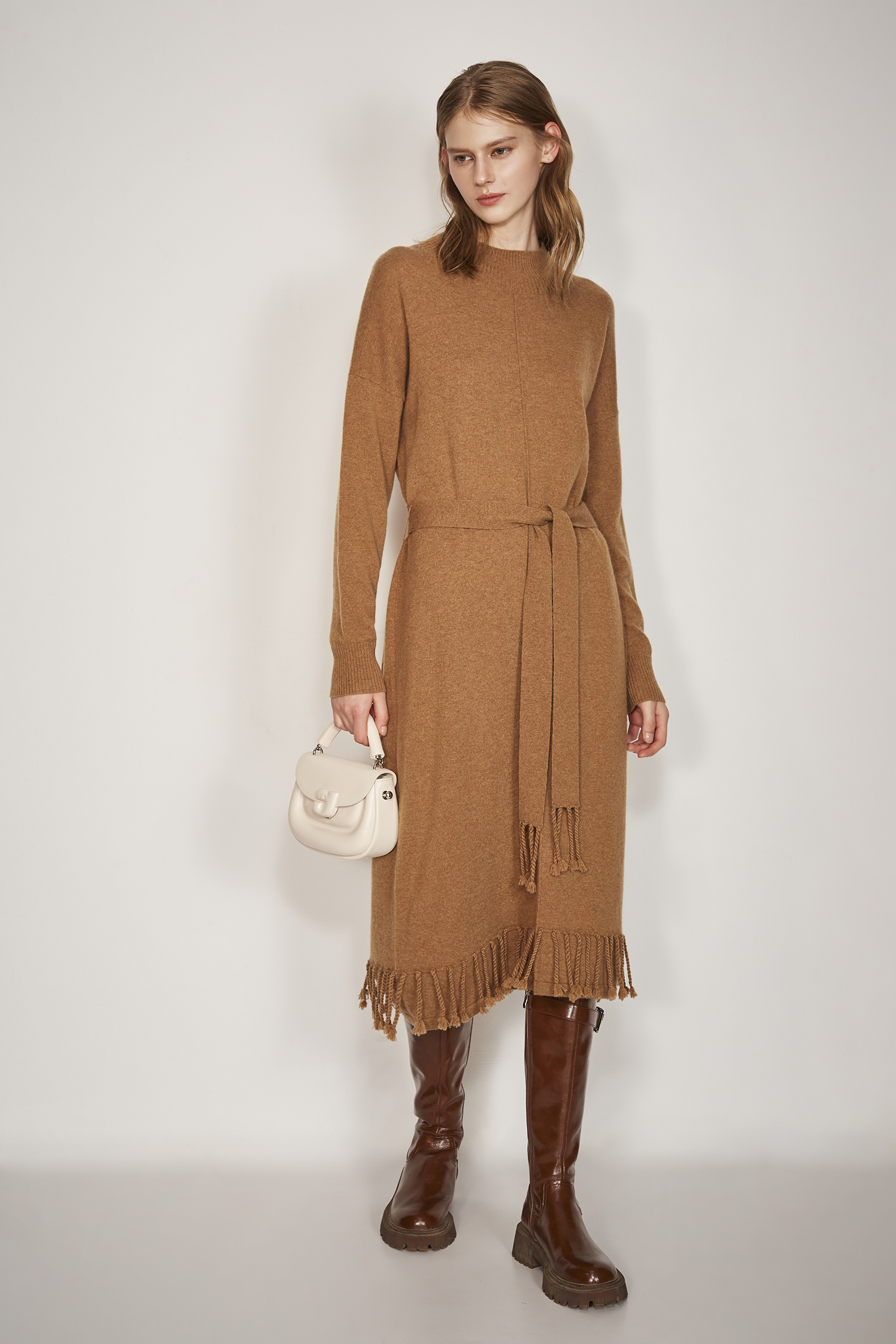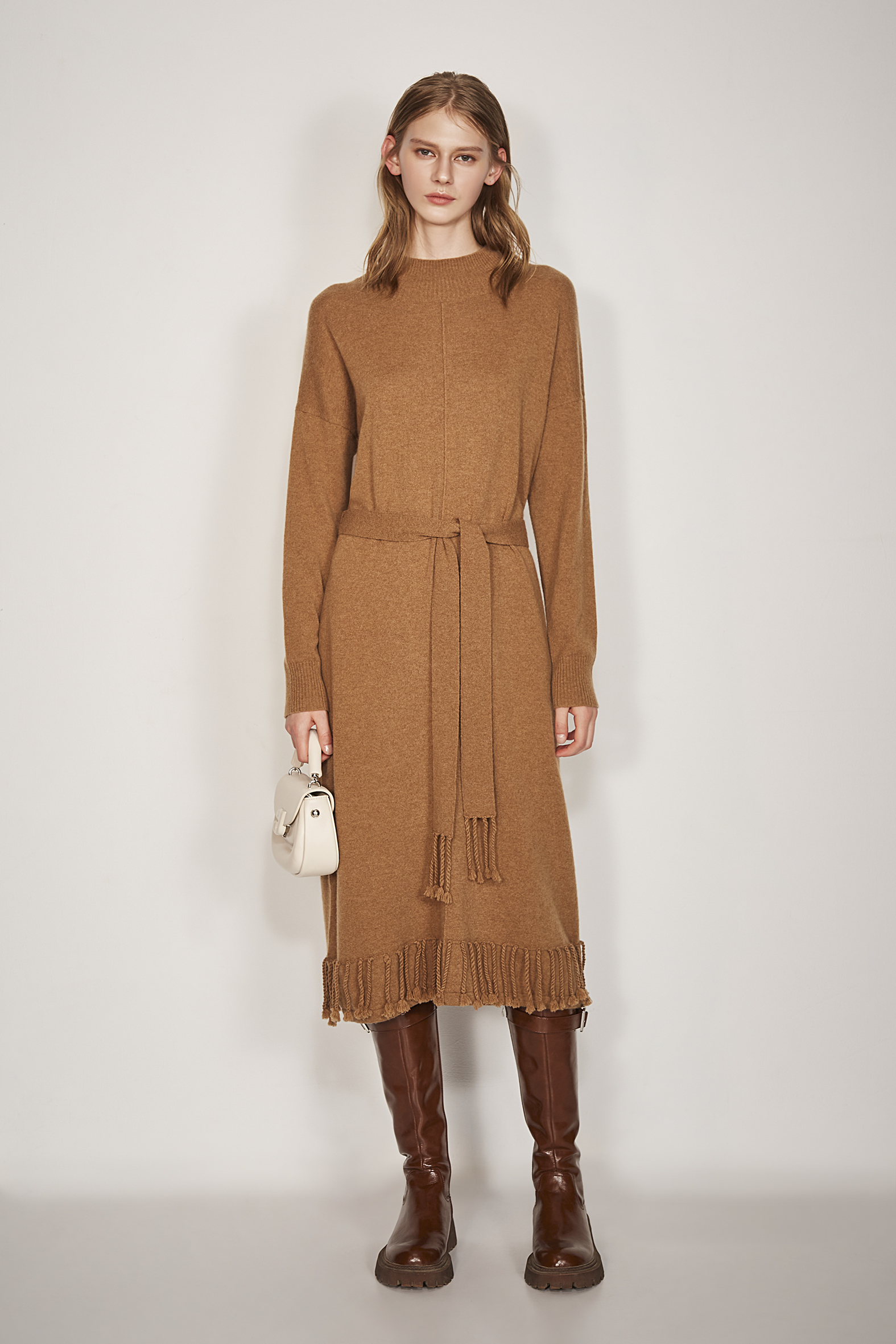 BC15218E1 駱駝商隊流蘇洋裝 (附綁帶)