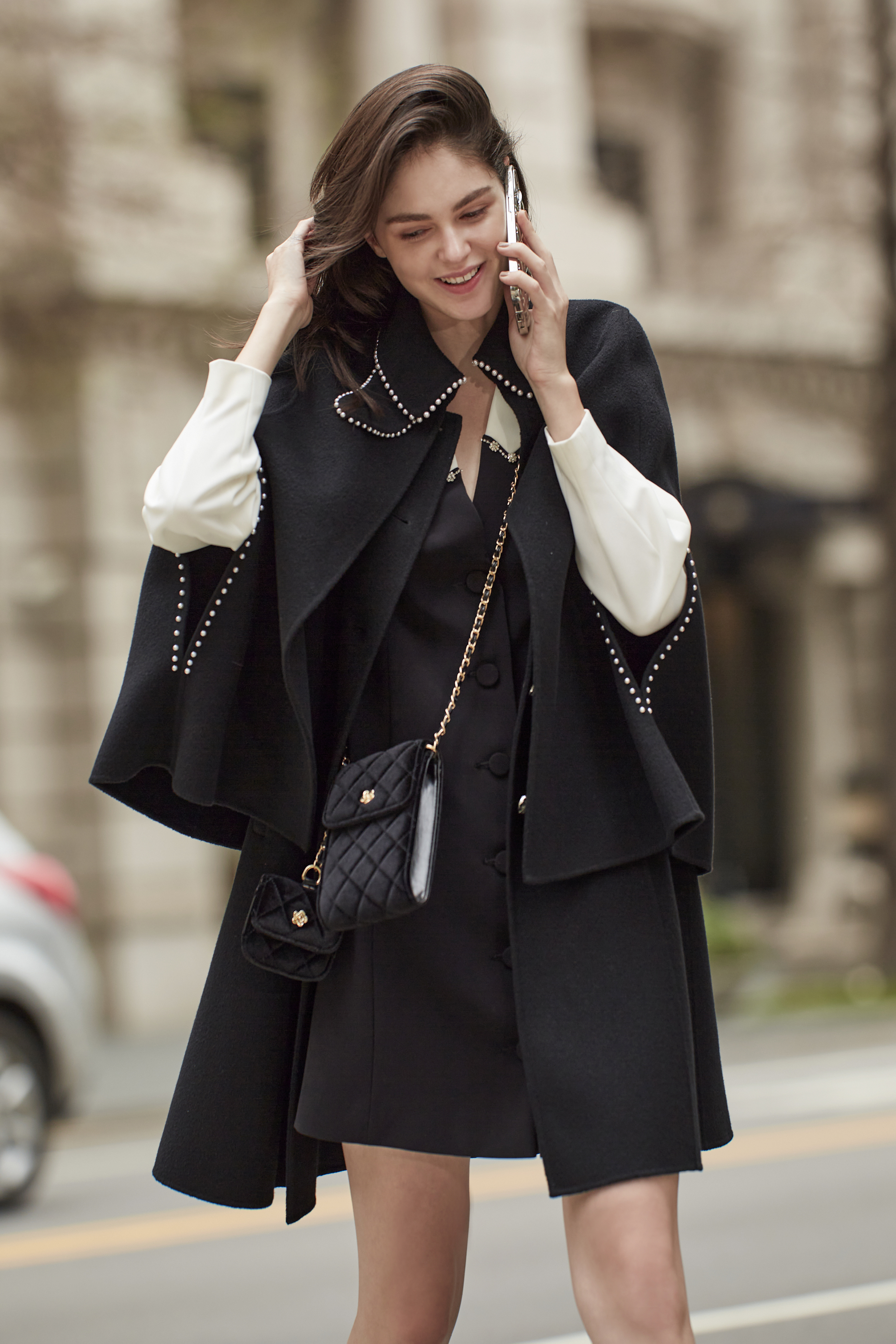 BC15380D1閃鑽飾條披風外套