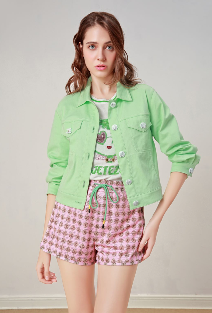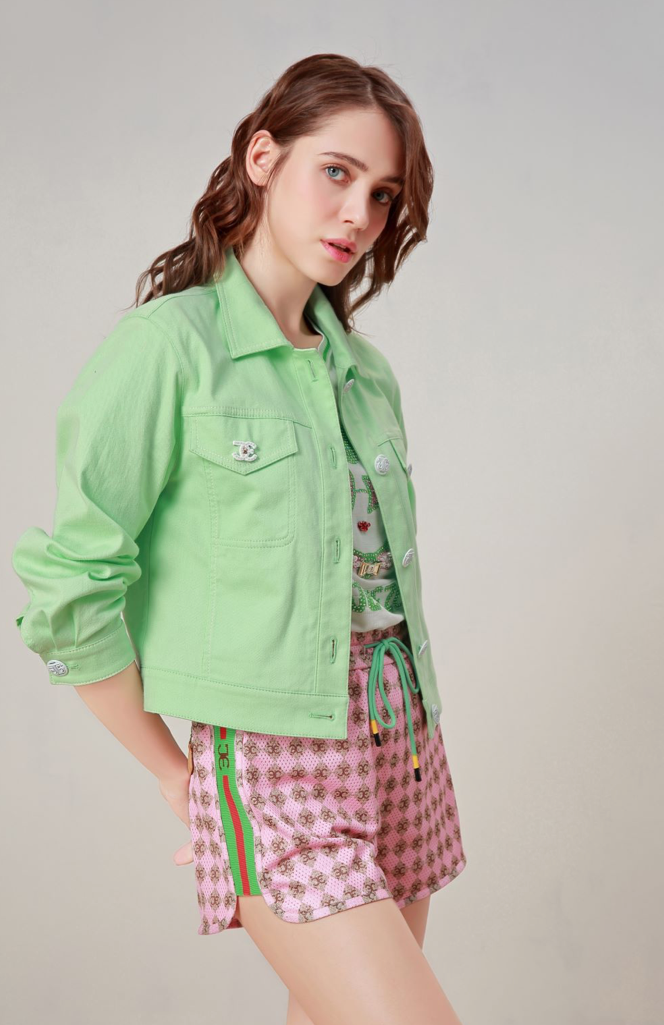 BC1EB008D1 沙灘派對高彈薄荷綠牛仔外套