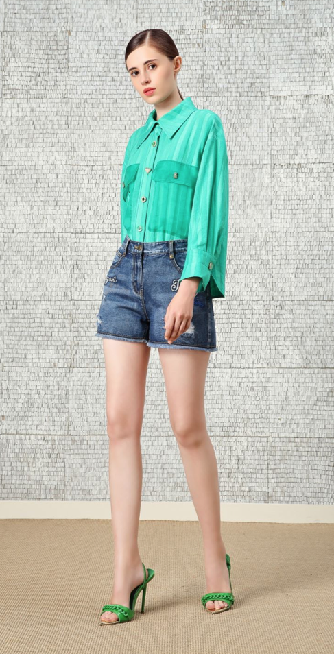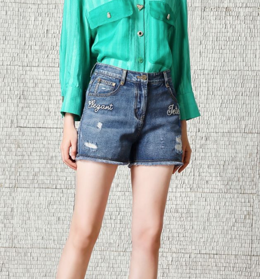 BC1EC328B1 JE PARIS刺繡刷破牛仔短褲