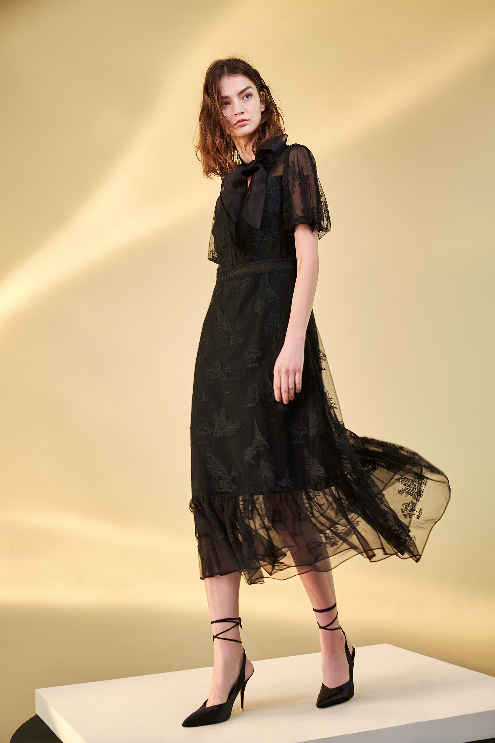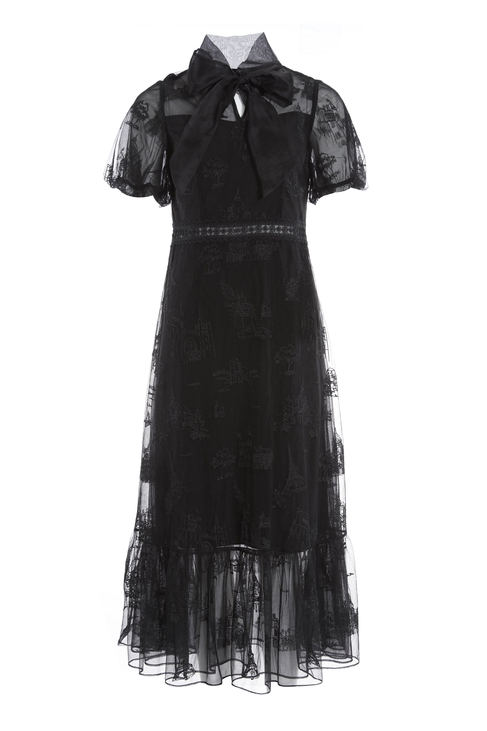 BC1EE123E1 莊園晚宴透氣網紗不規則綉花洋裝