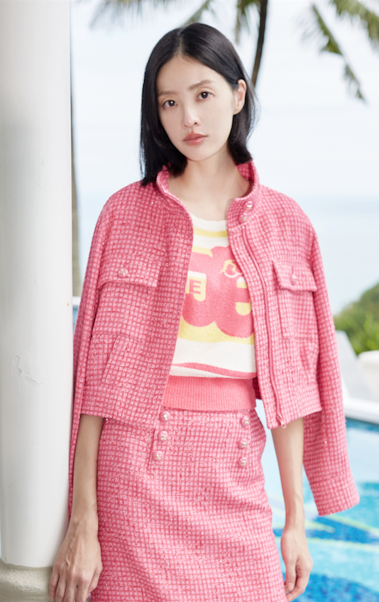 BD10001D1 新藝術花園格子小香圖領短版狩獵夾克