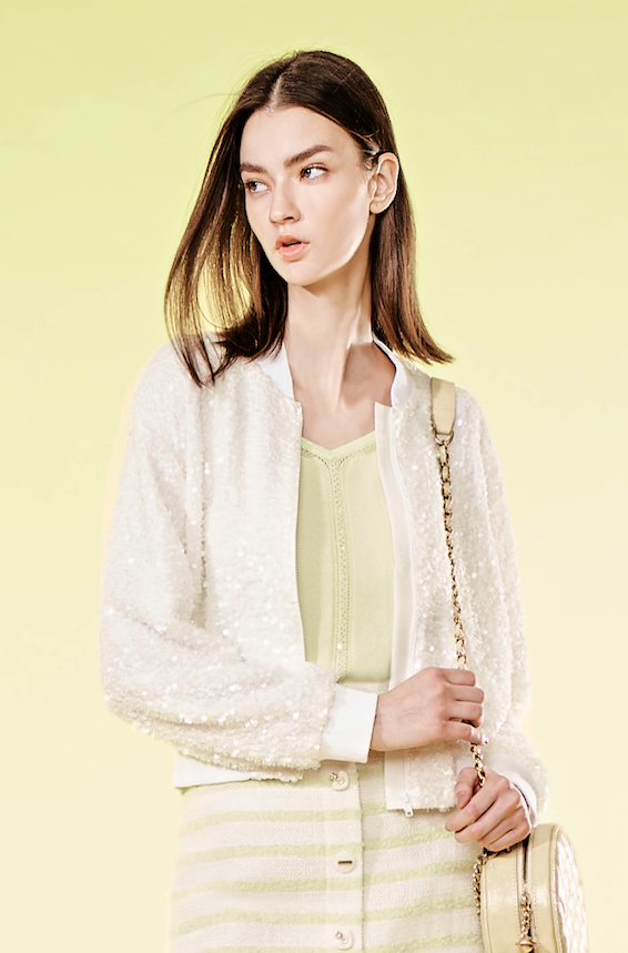 BD10019D1珍珠白亮片飛行夾克