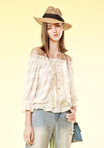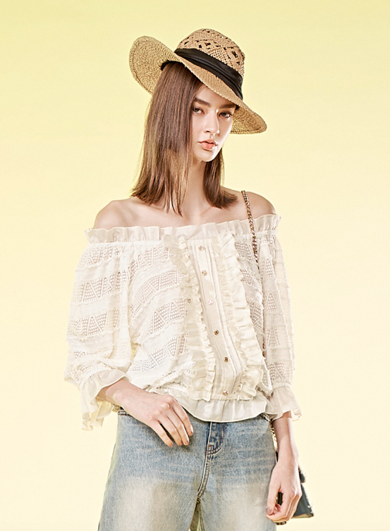 BD10037A1浮雕花園平口蕾絲上衣