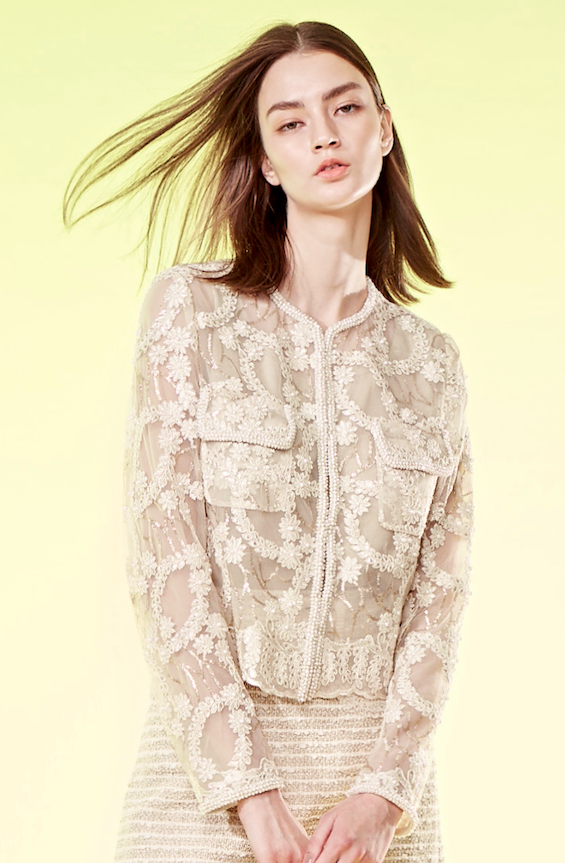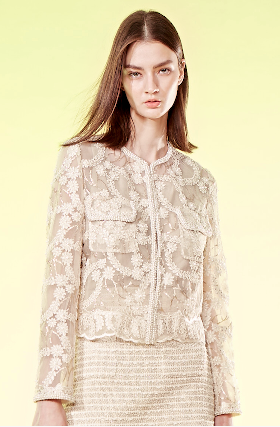 BD10038D1 浮雕花園珍珠勾邊藤花刺繡小香外套