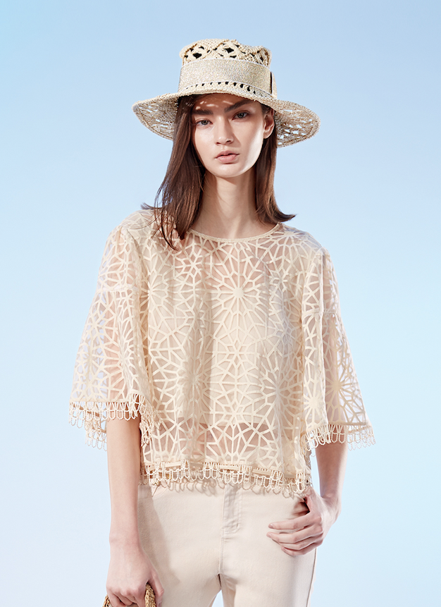 BD10039A1浮雕花園大A袖網紗雙層短版上衣