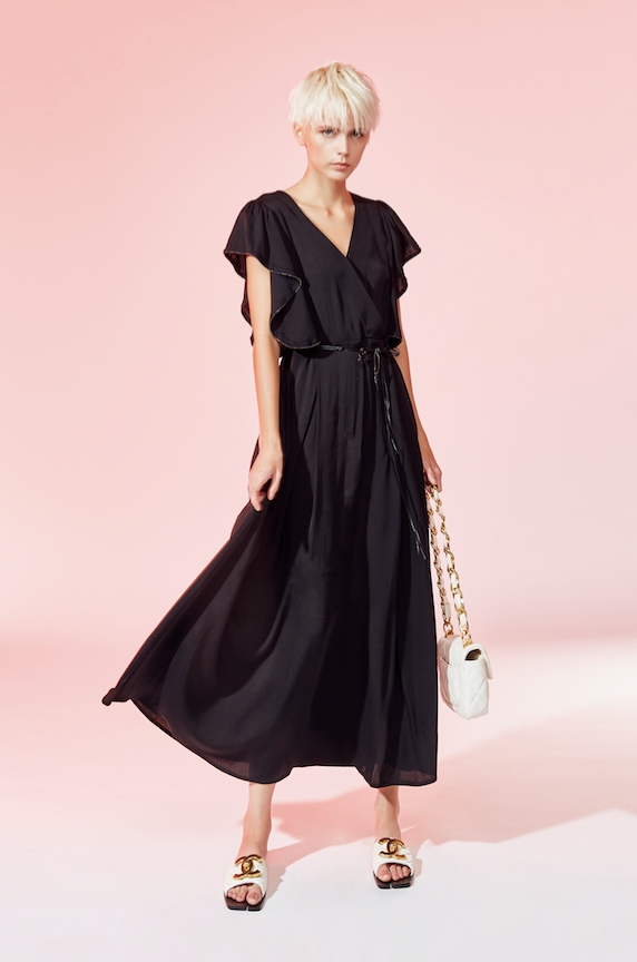 BD10062E1 黑白party蝴蝶袖圍裹式編織綁帶長洋 (附腰帶)