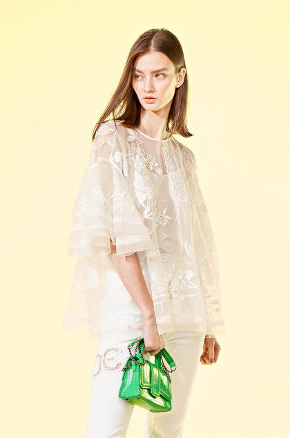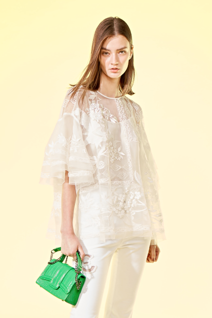 烏干絲座高密刺繡,並與沙網刺繡拼接。
