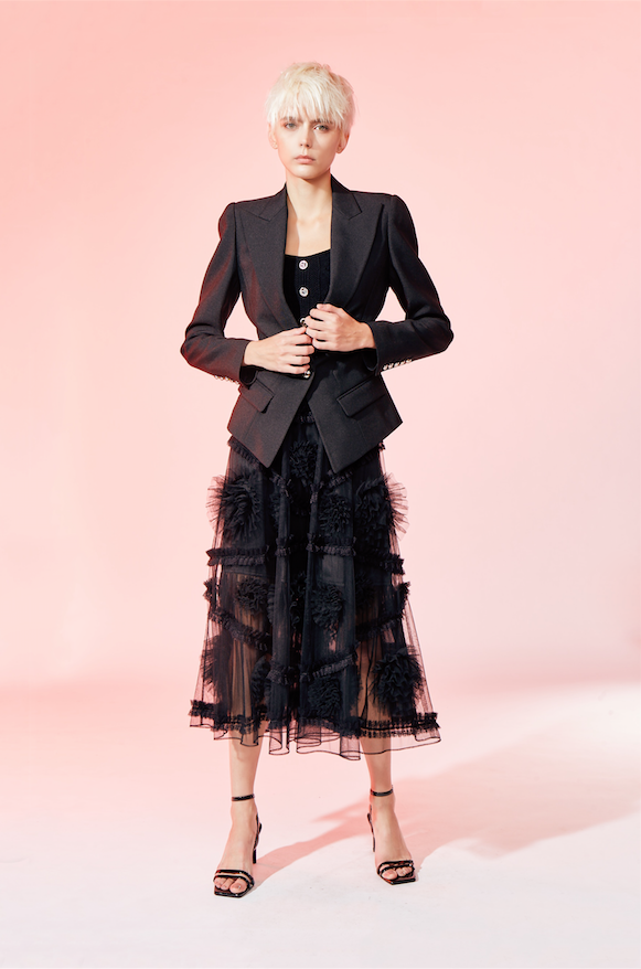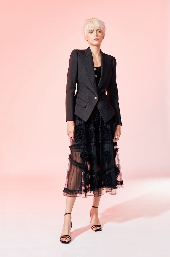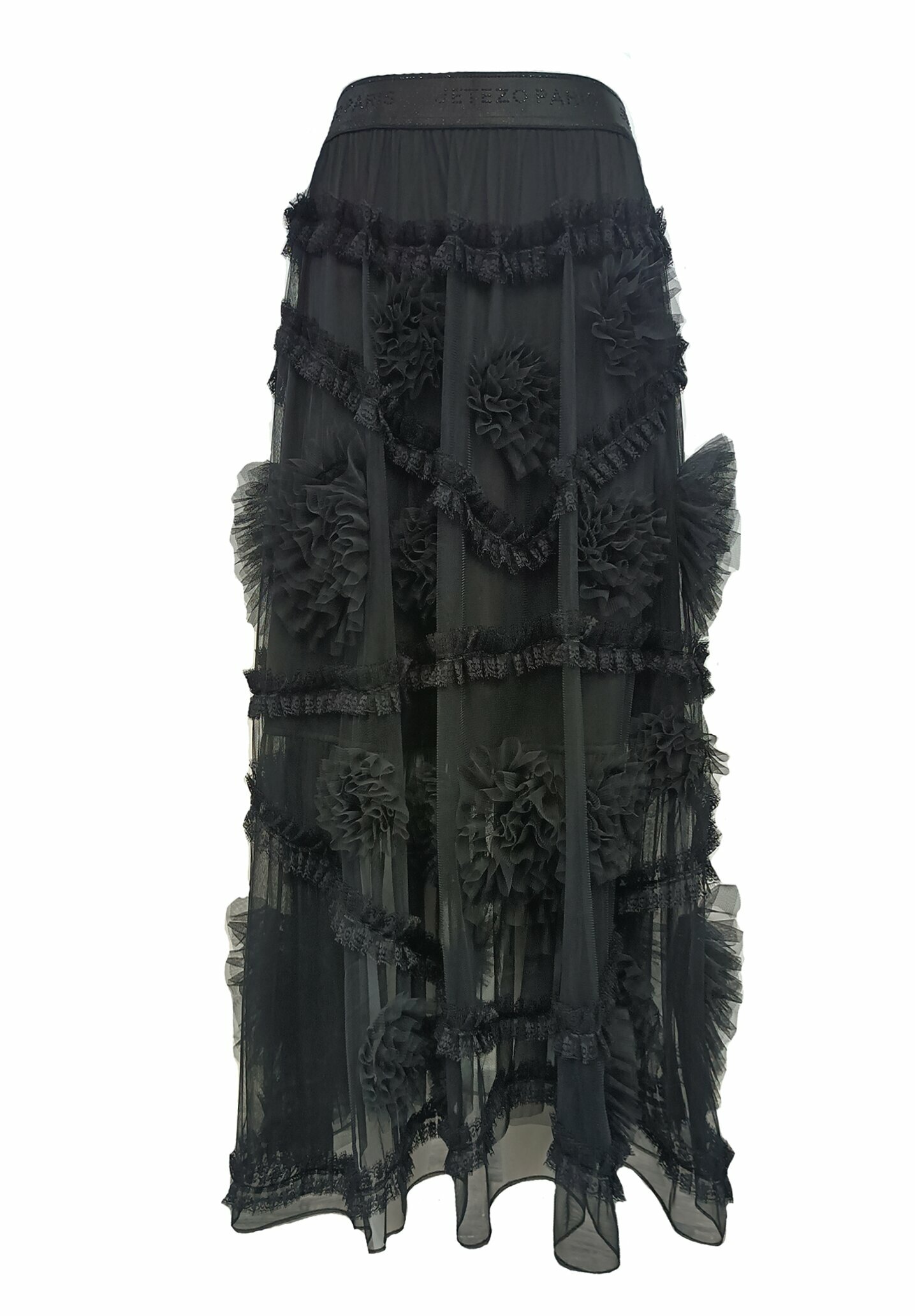 BD10101C1 巴特羅水波舞立體刺繡花紗裙(2色)