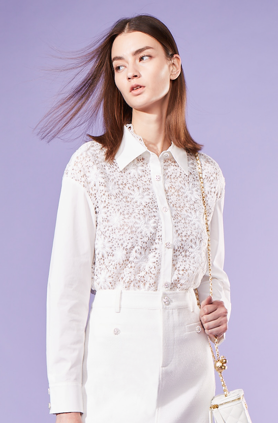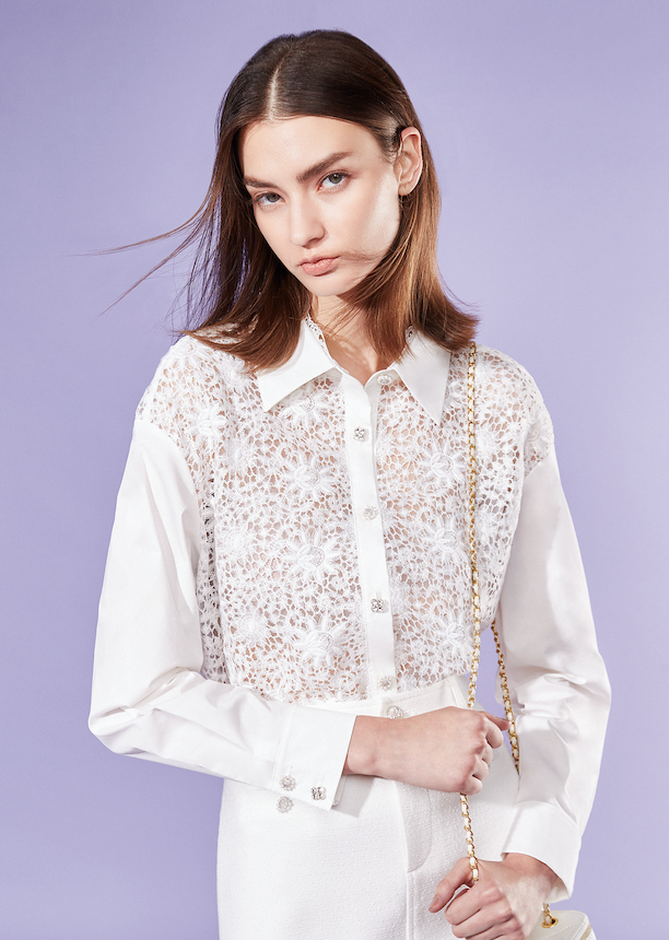 BD10103A1 新藝術花園太陽花刺繡蕾絲落肩短版襯衫