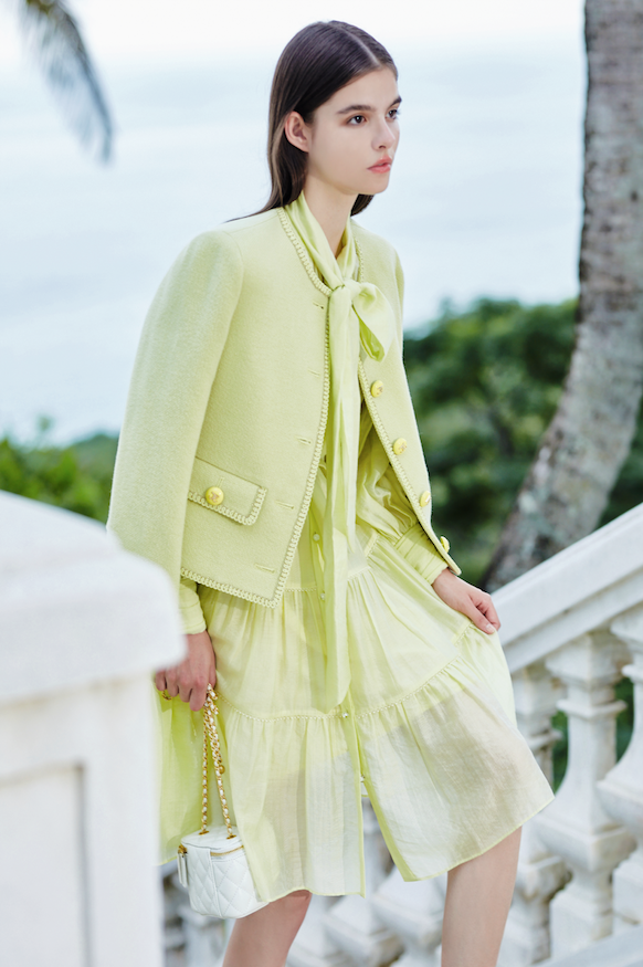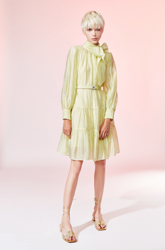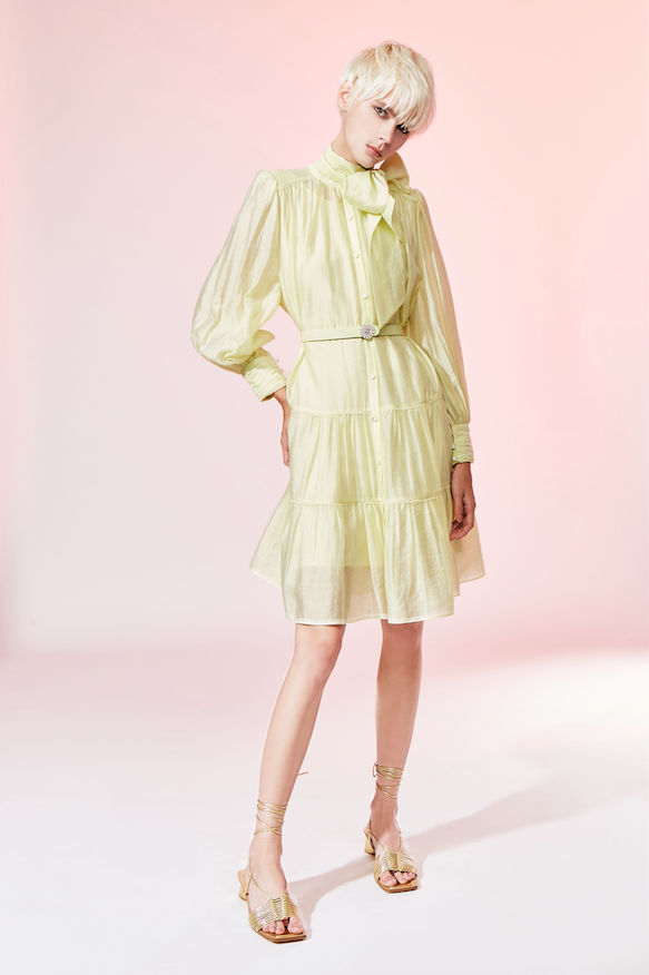 BD10111E1 光之森林嫩芽綠蝴蝶結大A蛋糕短洋 (附腰帶)