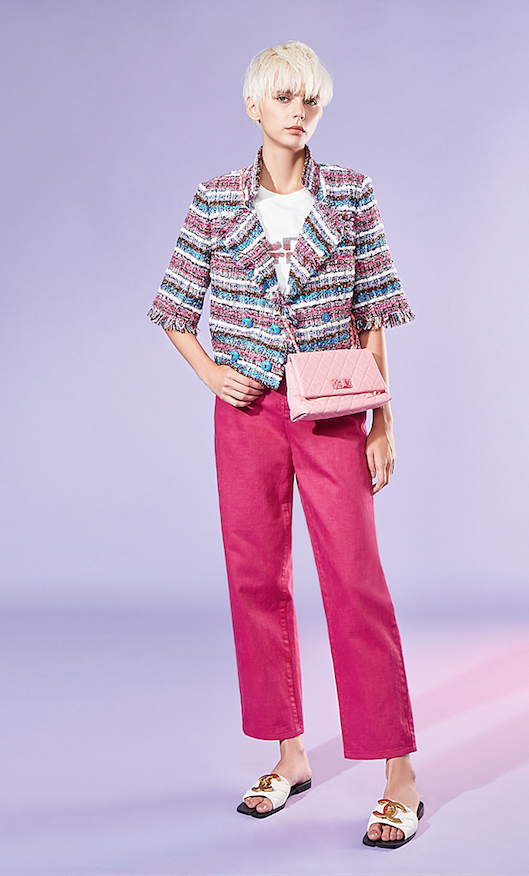 BD10121B1 新藝術花園玫瑰桃紅牛仔蘿卜褲