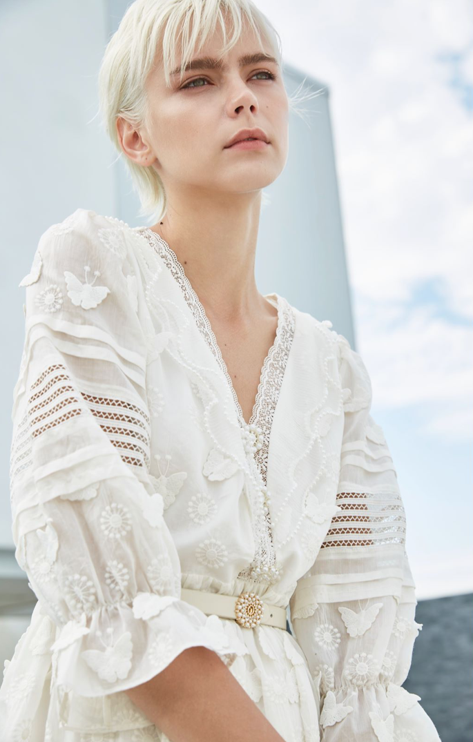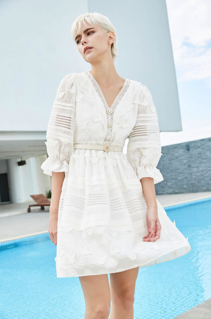 BD10162E1 新藝術花園V領太陽花蝴蝶泡袖X型短洋 (附腰帶)