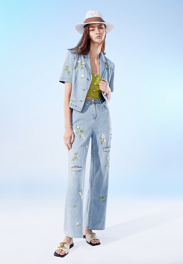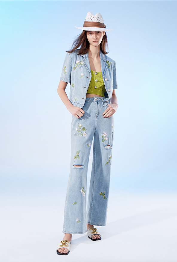 BD10308B1 光之森林刺繡牛仔直筒寬褲